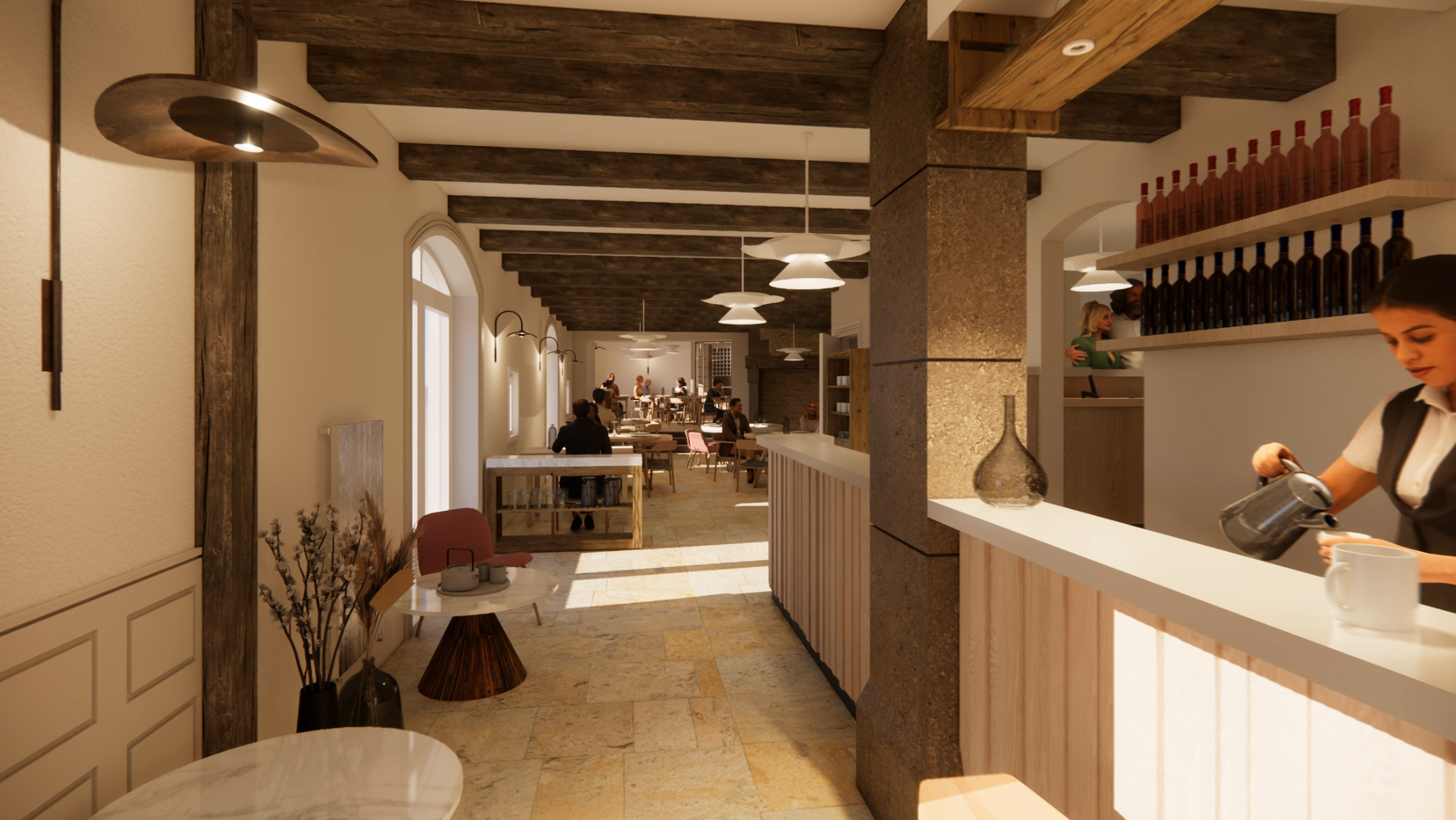 Création de planches tendances et proposition d’harmonies adaptées : choix des matériaux (adaptés aux ERP), peintures, mobilier professionnel et pérenne, objets décoratifs… entre sélections en boutique et sur catalogue.